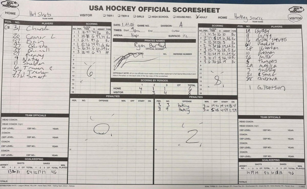 2026-01-21 09:00 PM Hotshots Hockey Source Hapo Ice Pavillion Ryan Burford 6 - 8