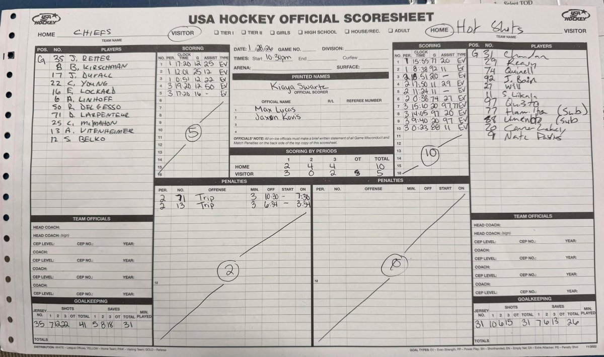 2026-01-28 10:30 PM Hotshots Chiefs Hapo Ice Pavillion Kiaya Swartz 10 - 5