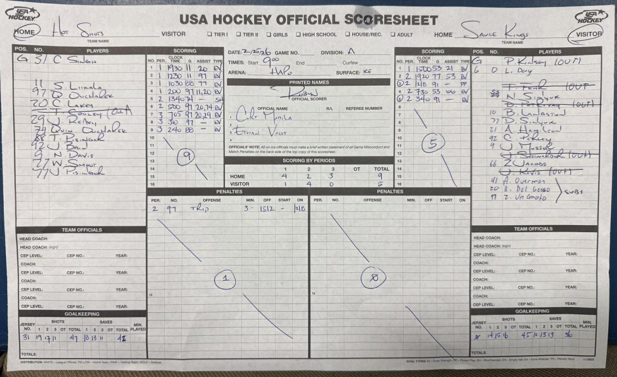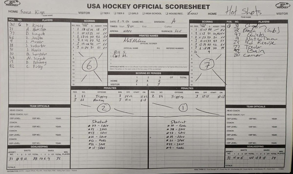 2026-02-04 09:00 PM Hotshots Sauce Kings Hapo Ice Pavillion Matt McCann 7 - 6 SO