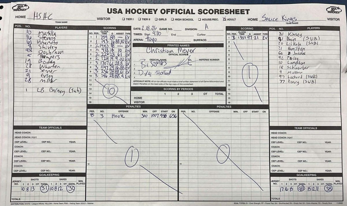 2026-02-18 09:00 PM Hockey Source Sauce Kings Hapo Ice Pavillion Christian Meyer 10 - 1