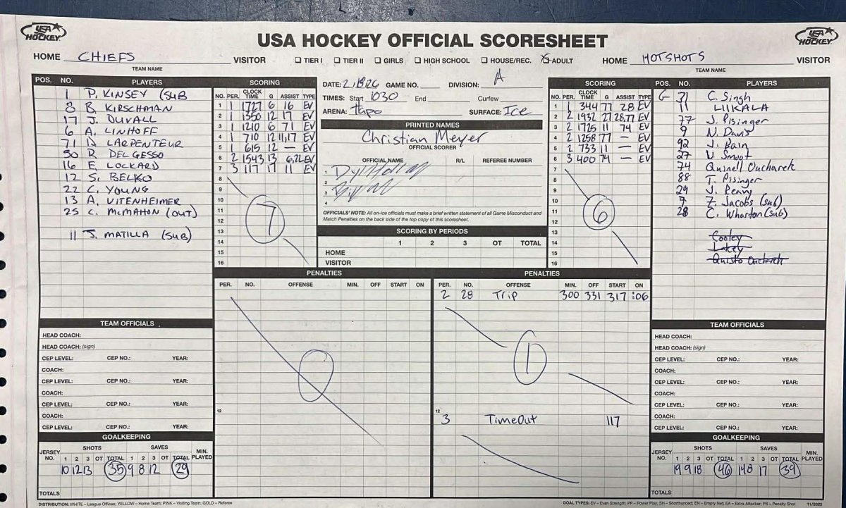 2026-02-18 10:30 PM Hotshots Chiefs Hapo Ice Pavillion Christian Meyer 6 - 7