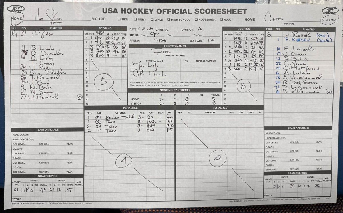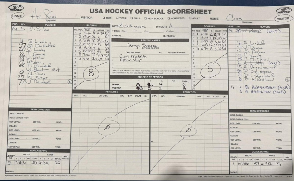 2026-04-01 07:00 PM Hotshots Chiefs Hapo Ice Pavillion Kiaya Swartz 8 - 5